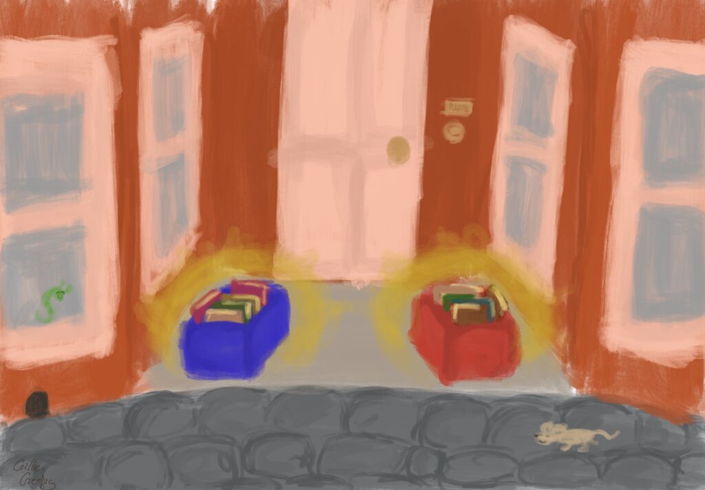 schöne olle Bücher – 📚 – und auch die ominös leuchtenden Boxen gefallen.